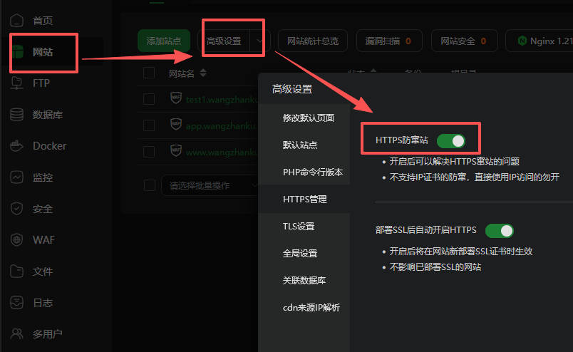 你的宝塔面板应开启HTTPS防窜站功能,最大减少受攻击风险。